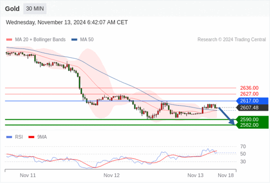 查看交易中心全球研究部门今日的市场观点。从受欢迎的交易产品中探索新的交易方法与机会。 欧元/美元黄金现货英镑/美元欧元/日元欧元/英镑美元/瑞郎德国DAX指数期货(urx)布伦特原油(IC)英国富时100指数期货 黄金现货当日内:短期关键阻力位在2617.00。 转折点: 2617.00 交易策略: 在2617.00之下,看跌,目标价位为2