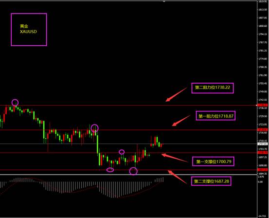 策略分析:第一支撑位附近轻仓看多,第一、二阻力位附近轻仓看空。