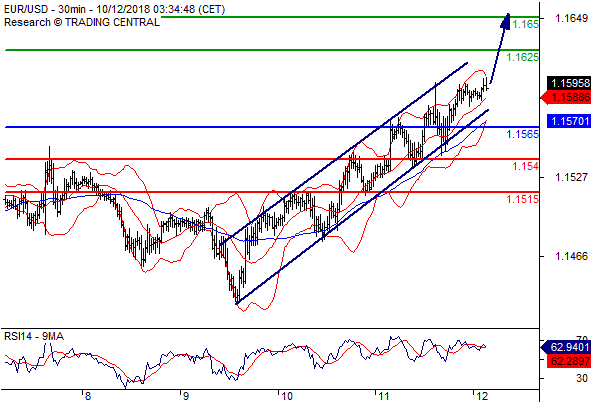 交易策略: 在 1.1565之上,看涨,目标价位为 1.1625 ,然后为 1.1650 。