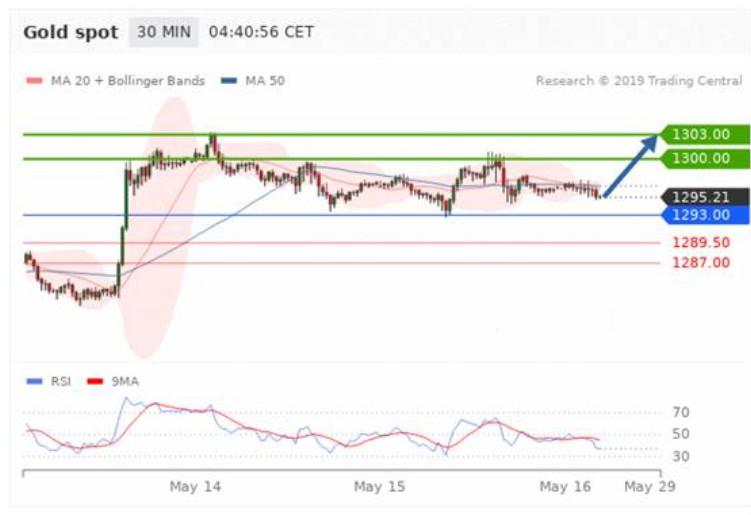 交易策略:在1293.00之上,看涨,目标价位为1300.00,然后为1303.00。