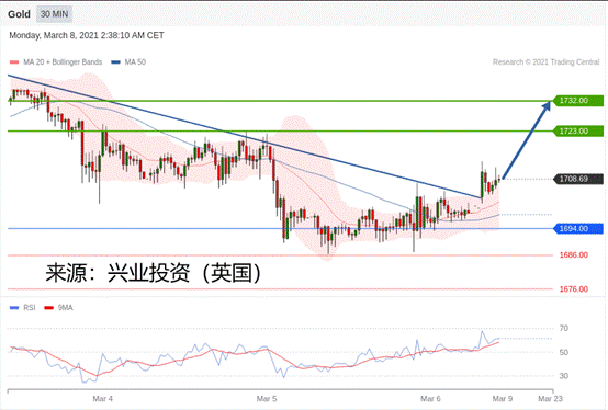 交易策略:在1694.00之上,看涨,目标价位为1723.00,然后为1732.00。
