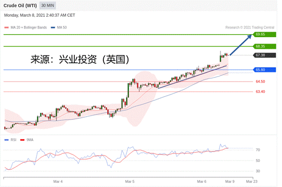 交易策略:在65.80之上,看涨,目标价位为68.35,然后为69.65。