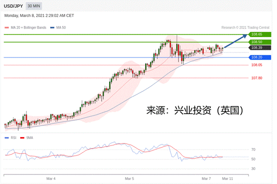 交易策略:在108.20之上,看涨,目标价位为108.50,然后为108.65。