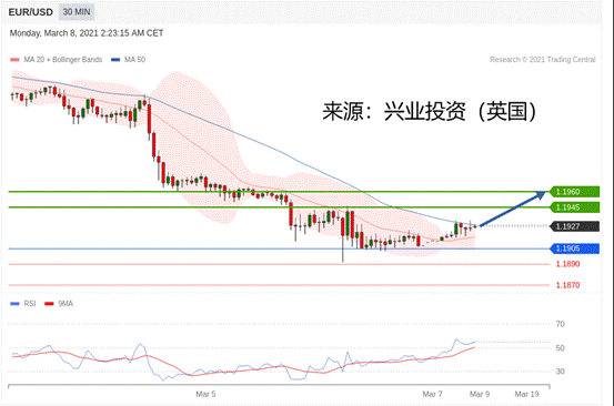 交易策略:在1.1905之上,看涨,目标价位为1.1945,然后为1.1960。