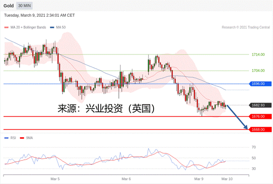 交易策略:在1696.00之下,看跌,目标价位为1676.00,然后为1668.00。