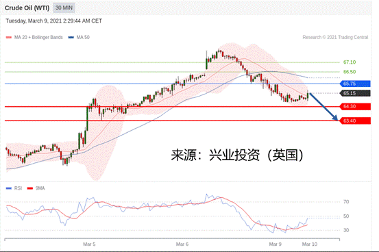 交易策略:在65.75之下,看跌,目标价位为64.30,然后为63.40。