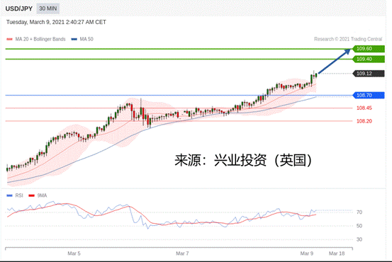 交易策略:在108.70之上,看涨,目标价位为109.40,然后为109.60。