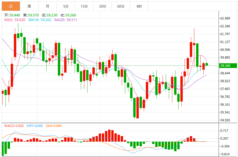 60分钟K线图显示,汇价在前期长时间窄幅整理后,出现单根长阴放量下破,形态上完成“箱体向下的有效突破”。当前布林中轨位于0.5874,上轨0.5950,下轨0.5797。价格自前期高点0.5942回落后,一举击穿中轨并沿着下轨急跌,最低探至0.5814,随后在0.5826一线弱势震荡,典型的“贴轨下行+短线技术性弱反抽”结构仍在延续。