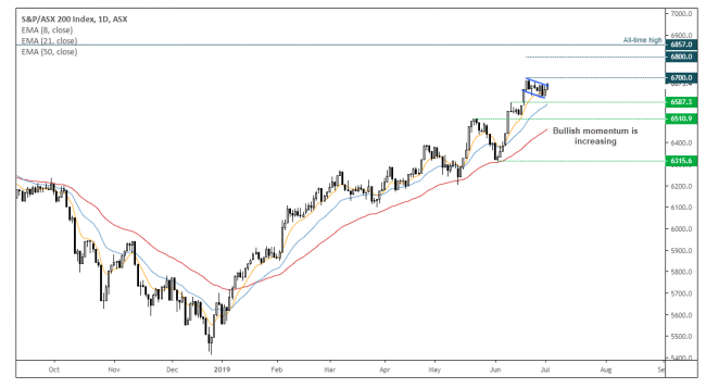 在大金融危机以来的低利率环境中,ASX200一直追随全球股市反弹的趋势。但与其美国对手股指不同的是,ASX200尚未站上大崩溃前创下的高点。不过,该股指确实正在逼近这个具有里程碑意义的价位。如果今天看到继续降息的信号,该股指可望创下周期新高。