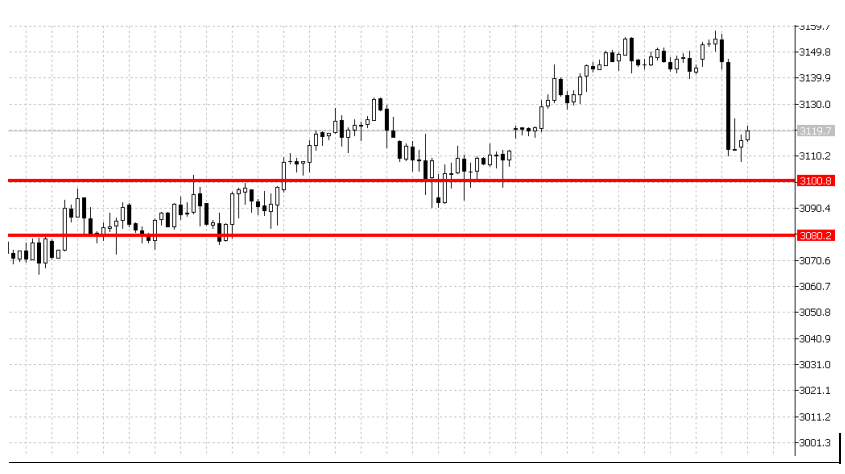 在H4小时周期上,我们可以看到标普500指数下方的支撑主要有两个,3100和3080。这是标普500的中期支撑区域,也是行情的重要中线支撑区域。也是整个12月,多空双方争夺的焦点。结果出来了,未来的行情指引也就大致清晰了。
