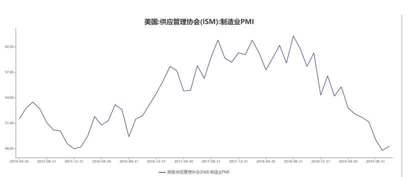 另一个重要因素是美国制造业PMI持续下滑,自8月跌破50枯荣线以来,美国制造业PMI连续4个月猥琐。12月2日最新报告显示,美国11月PMI进一步收缩至48.1。 12月2日同一时间公布的另一个数据也不佳,美国10月营建支出月率下滑0.8%,远低于预期增长0.4%.