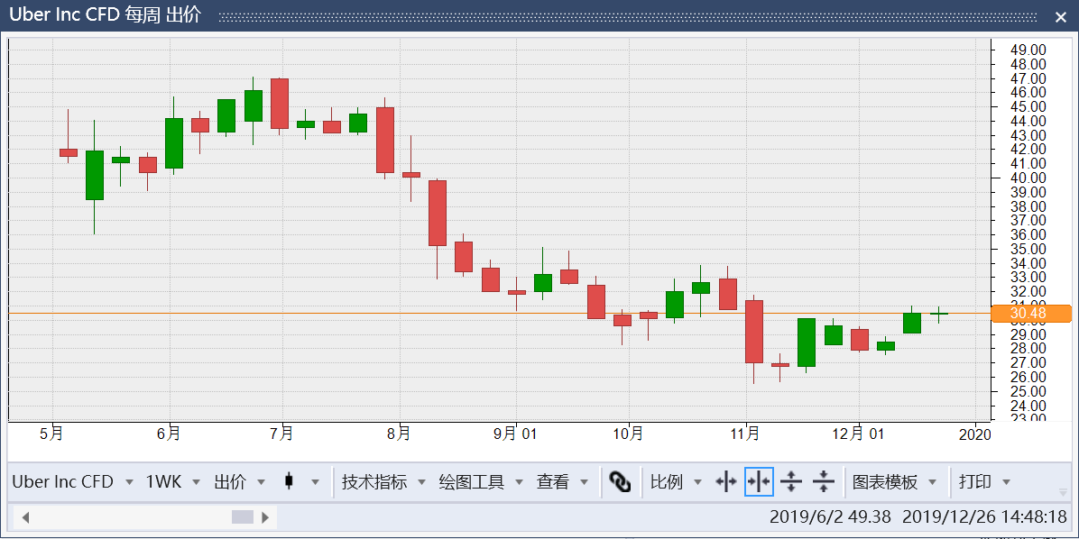 在股价上,我们认为Uber仍有望进一步下行。其目前阻力位在33.8美元,如果能向上突破该价格,才能说明股价进入到强势区,否则均属于弱势区域。而自11月6日股价开启了反弹,在将近2个月的时间内,股价仍只能反弹到33.8附近,足见其买盘匮乏,市场信心缺失。我们认为在33.8美元以下,Uber仍有看空的机会,甚至有望再度创出历史新低。