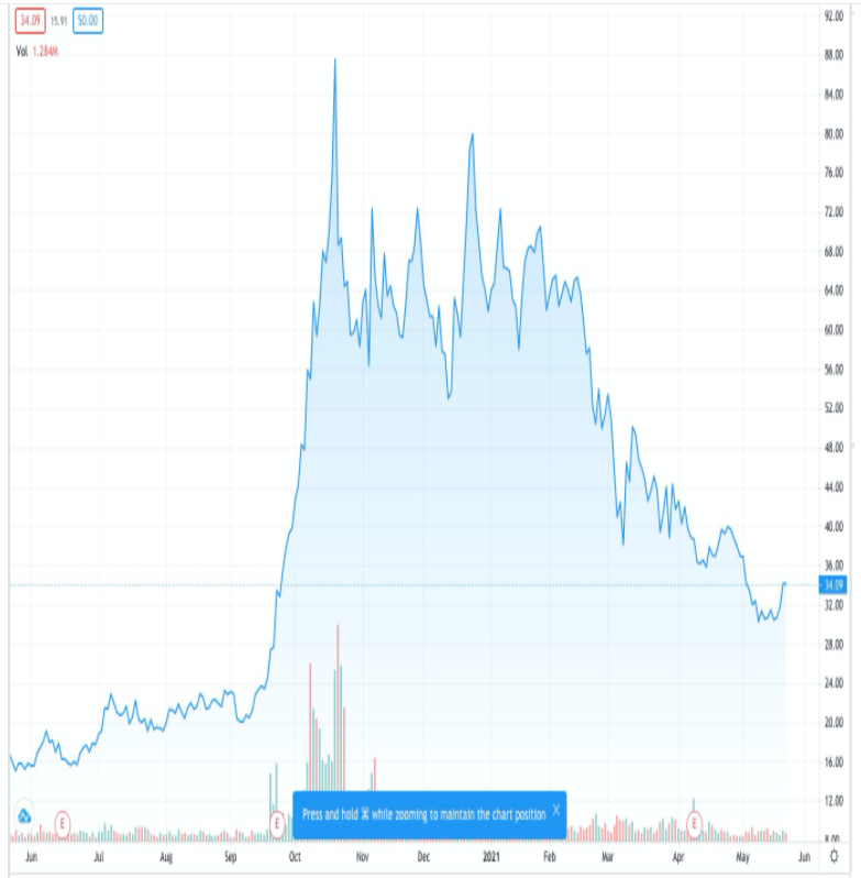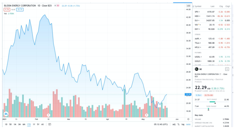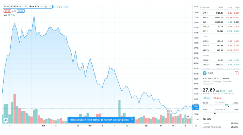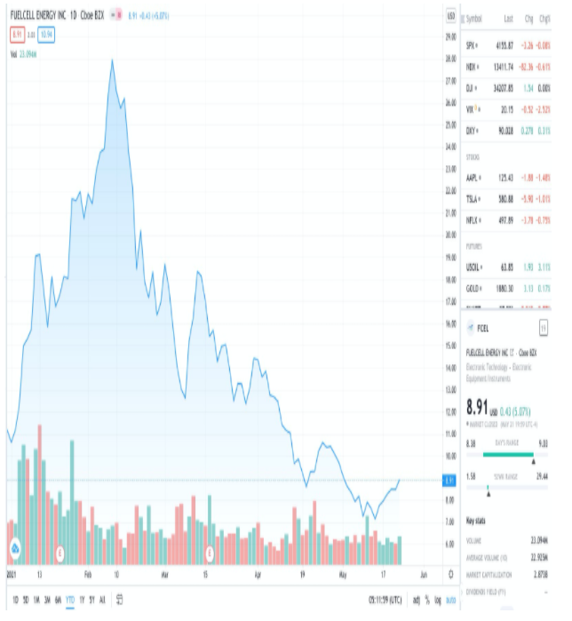 就全球个股交易机会来看,美国“氢能三剑客”不得不知——普拉格能源Plug Power((PLUG.US))、Bloom Energy(PLUG.US)和燃料电池能源Fuelcell Energy(FCEL.US),这“三剑客”的股价在去年拜登赢得大选和新冠疫苗的消息推动下一度大幅飙升,但也都在今年1月底美债收益率飙升的背景下遭遇“杀估值”,例如,根据Tradingview数据,普拉格能源从2021年1月26日的74.03美元回调至5月22日的27.89美元,回调幅度高达62%。目前介入机会是否重现备受投资者关注。