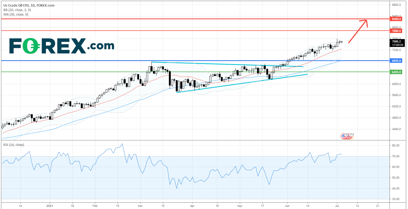 美国原油CFD : 短期看涨走势未变,上望8,300点