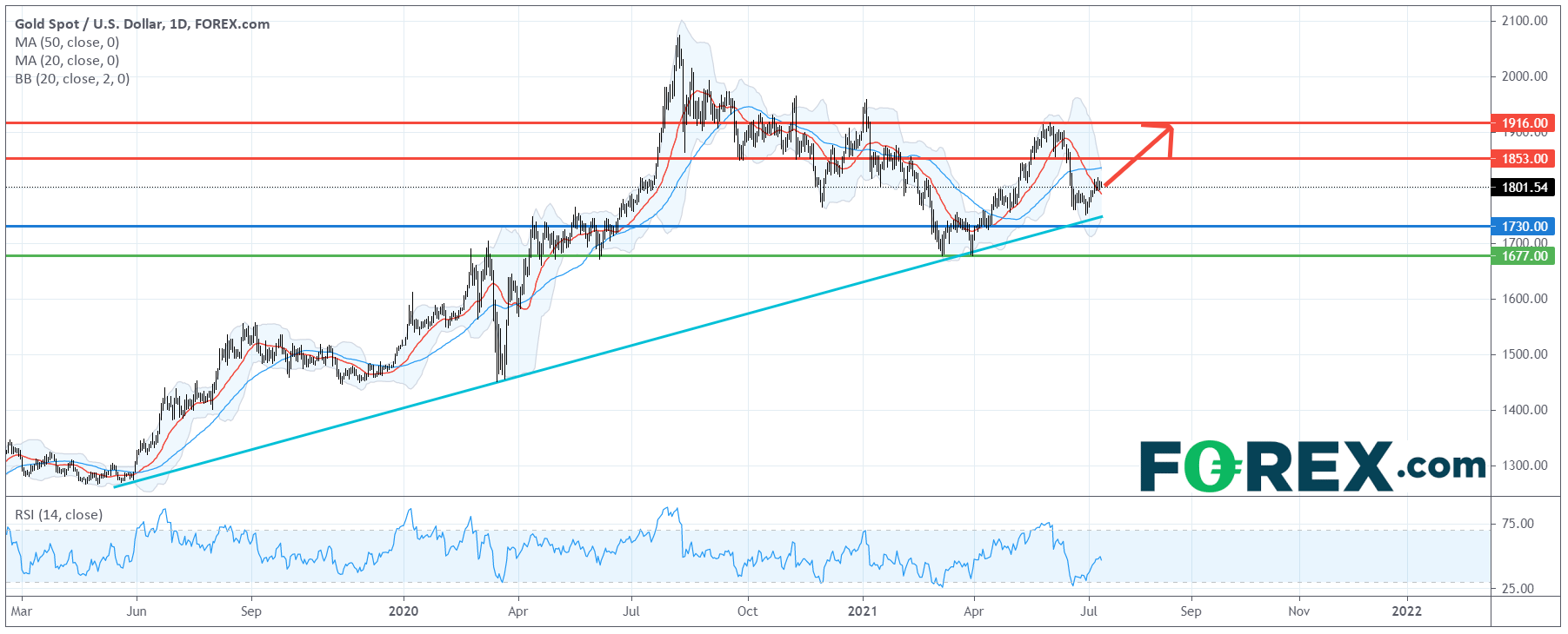 看涨的投资者可将1,730美元视为主要支持(止损)位,反弹目标在1,853美元及1,916美元。