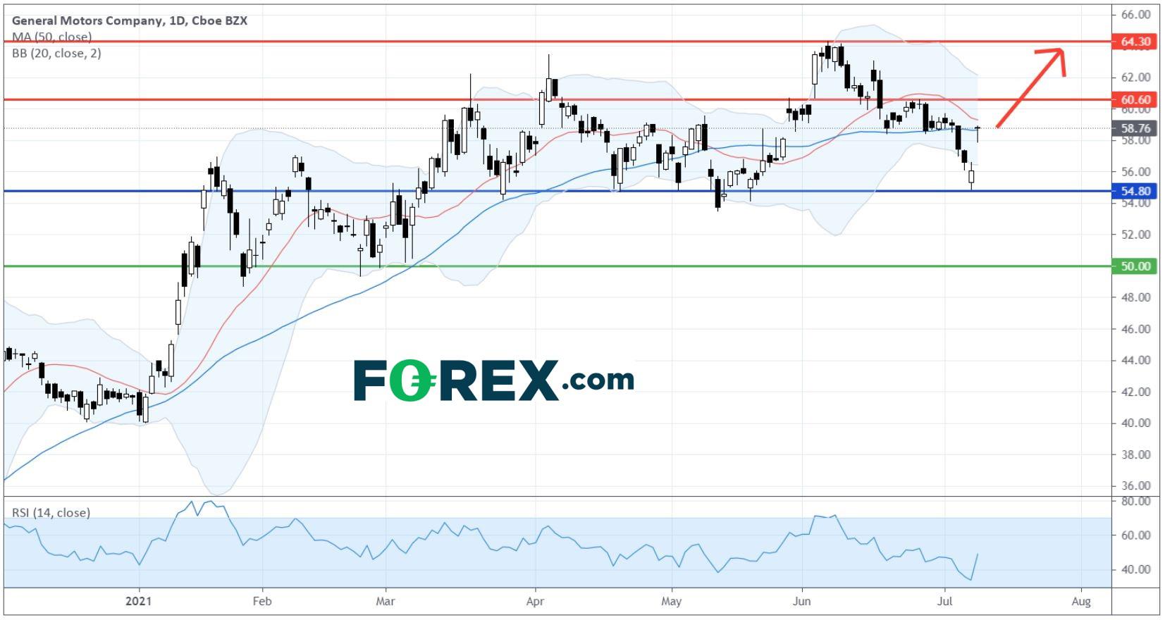 在日线图上,今年到目前为止,通用汽车的股价呈现出「一浪高于一浪」的看涨格局。