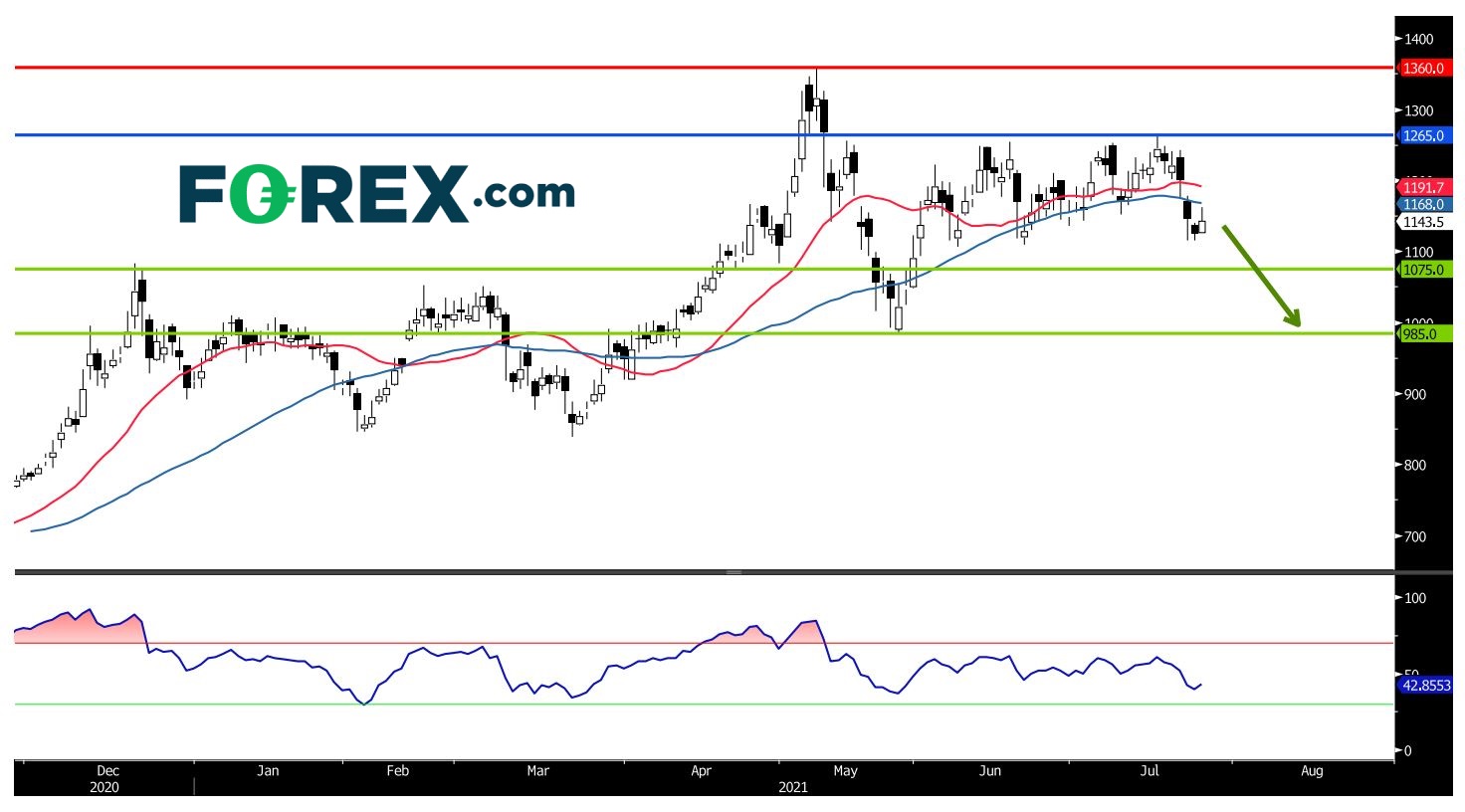 铁矿石期货价格终未能突破顶头阻力位1,265元人民币,并曾收盘在主要支持 (止损) 位1,135元人民币之下,短期反转看跌。