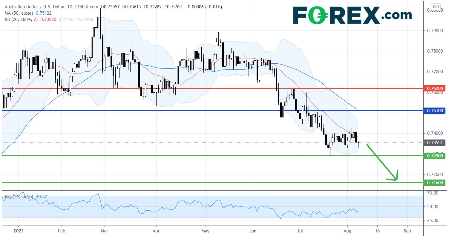 短期支持位在0.7290。此位一破,澳元/美元将跌向另一下行目标0.7160。