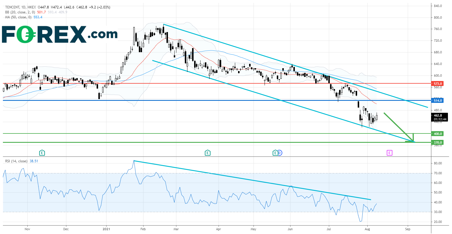 腾讯控股 (700.HK) : 走势看淡,将下试400港元大关