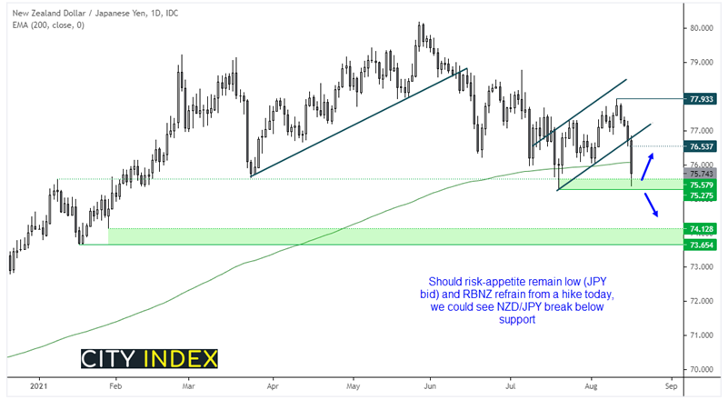 阿富汗撤退的消息、疲弱中国经济数据与新冠病毒病例数增加的消息奠定亚洲市场的避险基调并且将其延续到隔夜,零售销售同样令人失望地显示消费者缺少信心(如果上周五疲弱的消费者信心数据有所透露的话,那就是利空美元),但强于预期的工业产出还是减缓了负面冲击。
