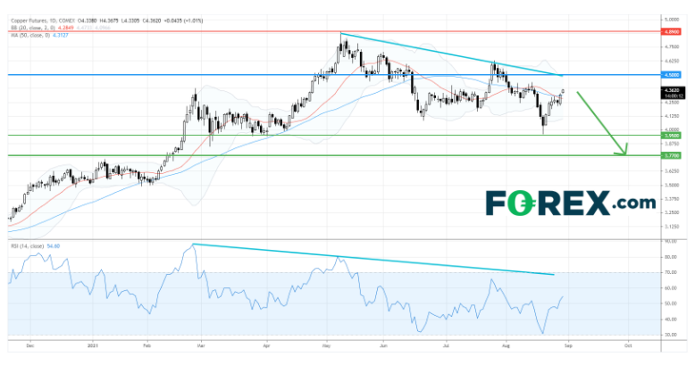 只要主要阻力 (止损) 位4.50美元不破,铜价维持整固的看法并可能回落至前低位3.95美元。下破3.95美元则可能引发下跌至3.77美元。