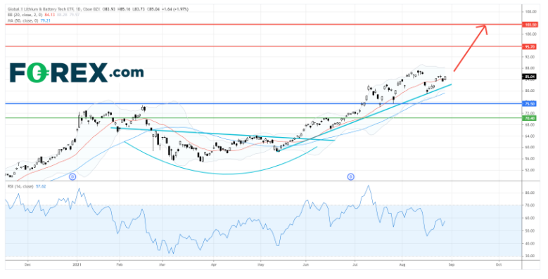 Global X锂、电池ETF(LIT.US): 走势看涨,料先见95.70美元