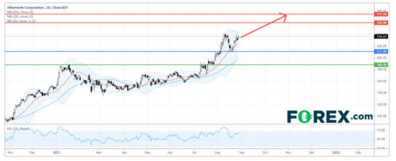 Albemarle (ALB.US):涨势强劲,首目标260美元