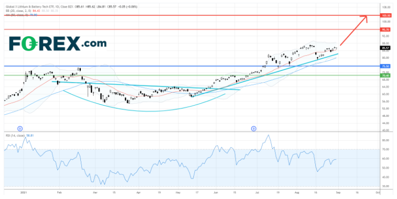 Global X锂、电池ETF(LIT.US): 上行走势持续,首目标95.70美元