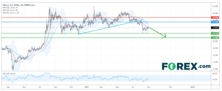 只要主要阻力 (止损) 位25.50美元不破,银价料将下探下行目标22.25美元及21.00美元。