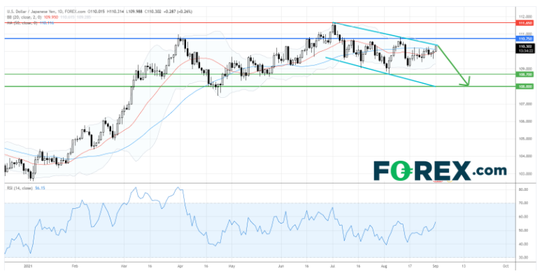 从技术层面看,目前走势不明显,只要8月份高点110.75仍守在上方,作為主要阻力 (止损) 位,滙价可能回落至108.70。只有下破108.70才会引发下跌至108.00。