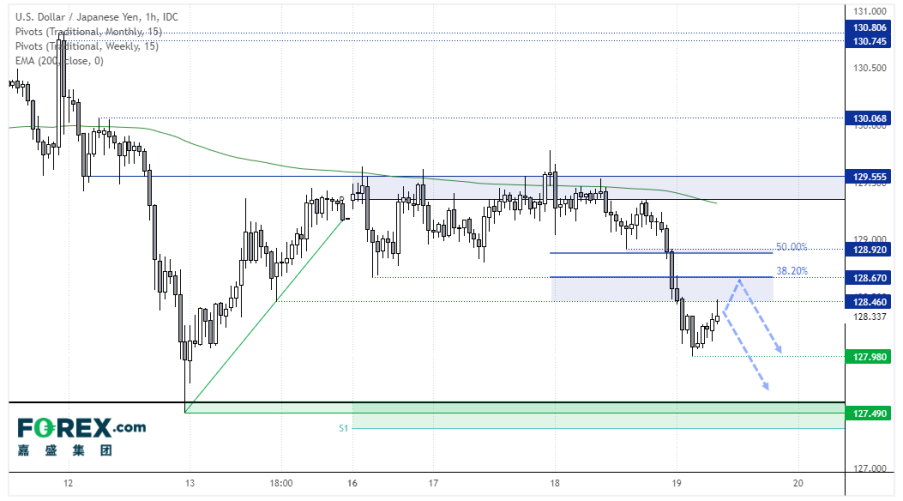 受制于200期指数移动均线附近的13,425,则我们继续看跌。如果下破13,000,我们会将阻力下移到13,200。我们的看跌目标是12,900 和 12,714,如果突破,重点关注12,387 – 12,500支撑区域。