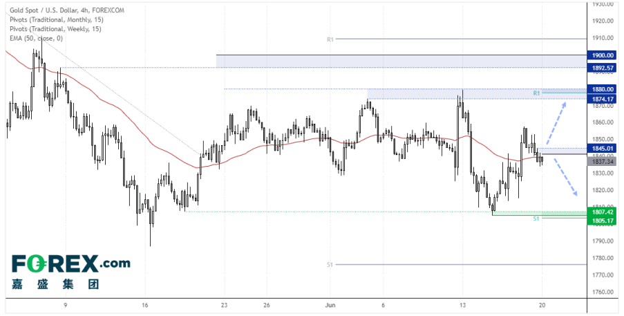 金价过去4周横盘震荡,令趋势交易者束手无策。金价现在交投于1805-1880区间中轨上下,1845阻力构成中枢位。站于其上,涨势可期,在其下形成看跌反转形态,或展开新一轮跌势。