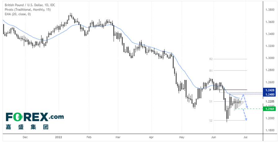 英镑/美元日图仍处于下跌趋势中,但目前没有摆脱区间的束缚,而且区间正在空前收缩。从下跌趋势判断,价格趋于向下突破区间。但其实向上向下都有可能,视乎美元本周的表现而定。我们当前的观点是,受制于1.2400区域看跌,并选择在朝该阻力反弹时沽出。如果站上该月度枢轴位,令看跌观点落空。下破1.2600,延续下跌可期。