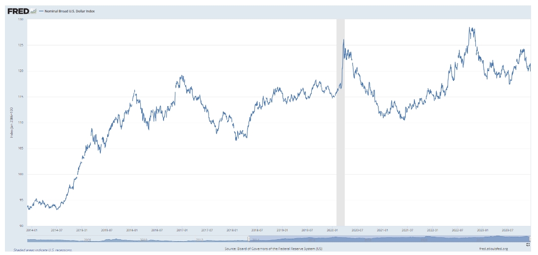 货币价值:一种货币相对于其他货币的价值也可以表明金融环境。强势货币可能反映出环境收紧,投资者买入该货币进行避险,而货币走弱可能意味着环境放松,因为投资者从其他货币上寻求更高的回报。