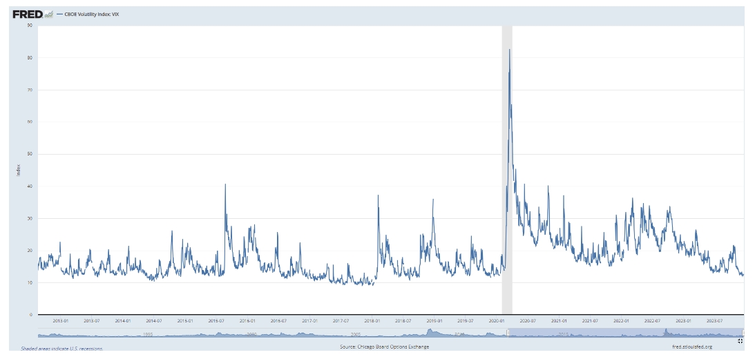 这是美国波动率指数(VIX),它使用期权价格来衡量美国标普500指数未来一个月的预期波动率。