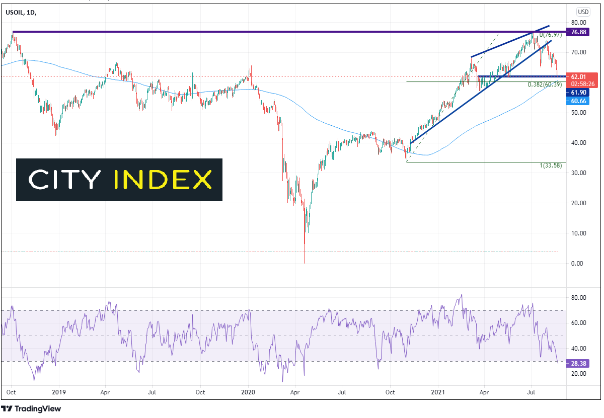 本文来自于嘉盛集团特别供稿,外汇及CFD交易可能会为您的投资带来机会与风险。 油价上涨,结束七连跌 石油价格结束连续7天跌势,正在走高。在今天启动上扬前的前一周,受新冠肺炎病例上升或殃及原油需求的担忧影响,加之联邦公开市场委员会(FOC)会议纪要偏鹰,美元走强,油价大跌逾5%。 本周伊始的美元疲态让大宗商品