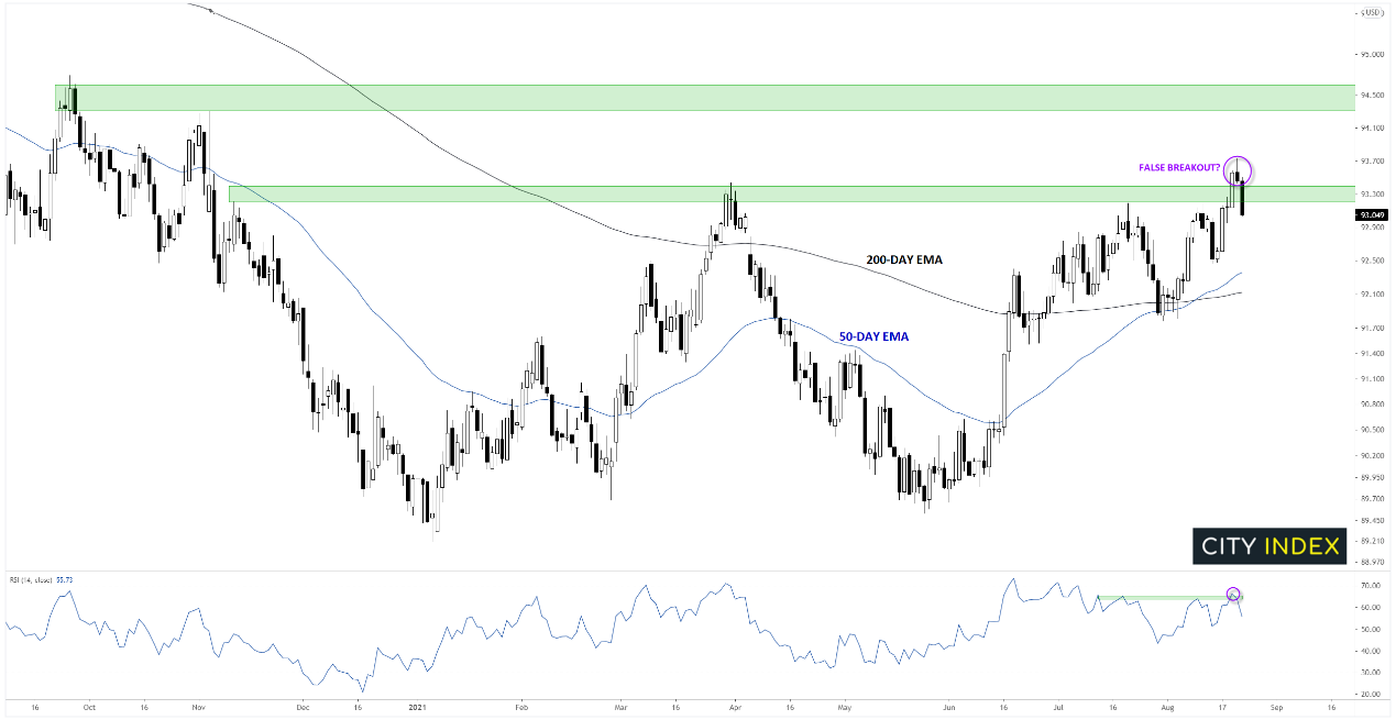 本文来自于嘉盛集团特别供稿,外汇及CFD交易可能会为您的投资带来机会与风险。 德国Dax指数上涨,德国GD超预期 随着美联储缩减购债规模的担忧缓解,市场情绪高涨,德国Dax指数延续上一交易日涨势,与欧洲其他股指一道走高。 德国经济第二季度增速快于预期,GD季率增长1.6%,预期为1.5%。GD年率自最初估计的9.2%上修至