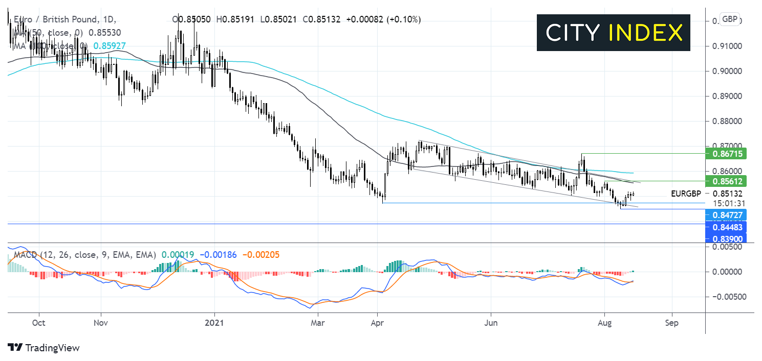本文来自于嘉盛集团特别供稿,外汇及CFD交易可能会为您的投资带来机会与风险。 尽管英国就业报告鼓舞人心,欧元/英镑仍然走高 尽管英国就业市场数据向好,而欧元区第二季度GD数据尚未发布,欧元/英镑仍小幅走高。 英国5月新增就业岗位9.5万个,远高于4月的2.5万和预期值7.5万。 截至6月份的三个月,失业率自4.8%降至