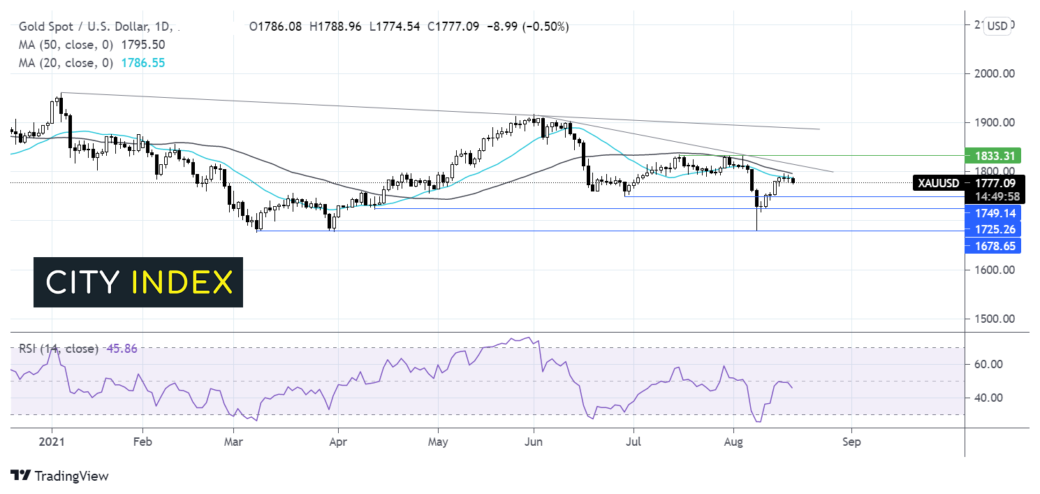 本文来自于嘉盛集团特别供稿,外汇及CFD交易可能会为您的投资带来机会与风险。 FOC会议纪要后,金价下跌,但因新冠疫情担忧跌幅受限 联邦公开市场委员会(FOC)会议纪要公布后,美元买盘回升,金价推低。 会议纪要显示,美联储可能今年晚些时候开始缩减购债规模。也有一些政策制定者倾向于明年开始缩表,但市场淡化了这