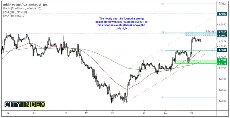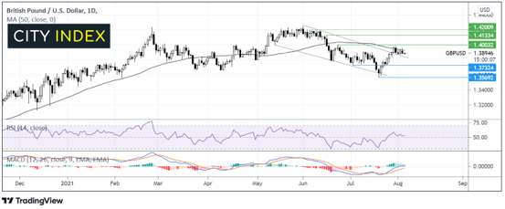 本文来自于嘉盛集团特别供稿,外汇及CFD交易可能会为您的投资带来机会与风险。 英镑/美元聚焦“超级星期四”英央行会议 英镑/美元正在舔舐伤口。在Clarida鹰派言论及美国I服务业数据创下纪录后,美元周三走高。 注意力转向英央行。预计此次会议不会有重大意外,央行将保持货币政策不变。 随着新冠肺炎病例不断增加,