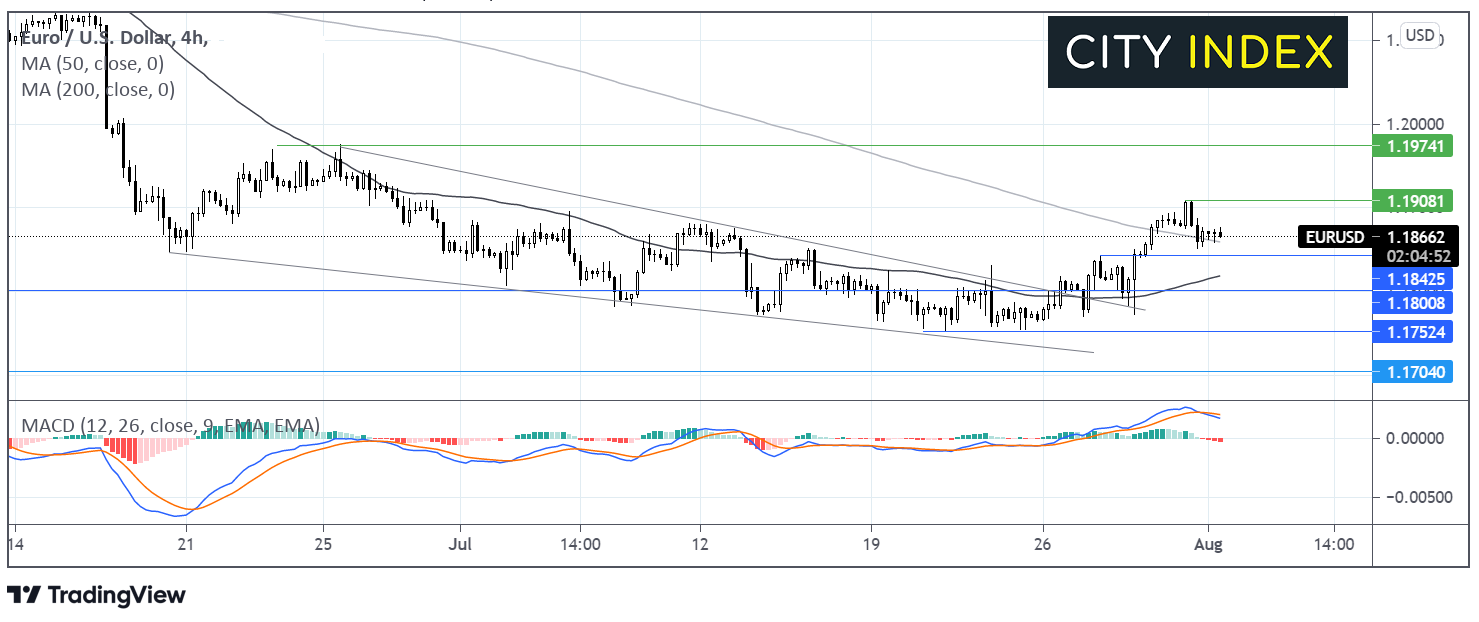 本文来自于嘉盛集团特别供稿,外汇及CFD交易可能会为您的投资带来机会与风险。 欧元/美元等待制造业I数据出炉 欧元/美元本周初试着利用美元疲弱机会走高。参议院就基础设施支出展开讨论,美元殖利率下挫,美元追跌。 经济重开带动德国6月零售额月率跃升4.2%,超出2%的预期增幅。6月销售额年率同样大增6.2%,前值-2.4%