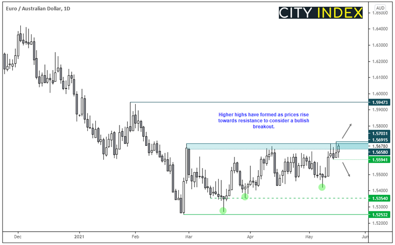 本文来自于嘉盛集团特别供稿,外汇及CFD交易可能会为您的投资带来机会与风险。 黄金升穿关键阻力位 黄金正交投于3个月高点上方,上穿1850美元价位。 因美国零售数据疲弱加之美联储重引鸽派言论,美债殖利率连续第三天下跌,贵金属价格提振。 地缘政治相关头条及对亚太地区新冠疫情再度抬头的担忧令金价获撑。 在监