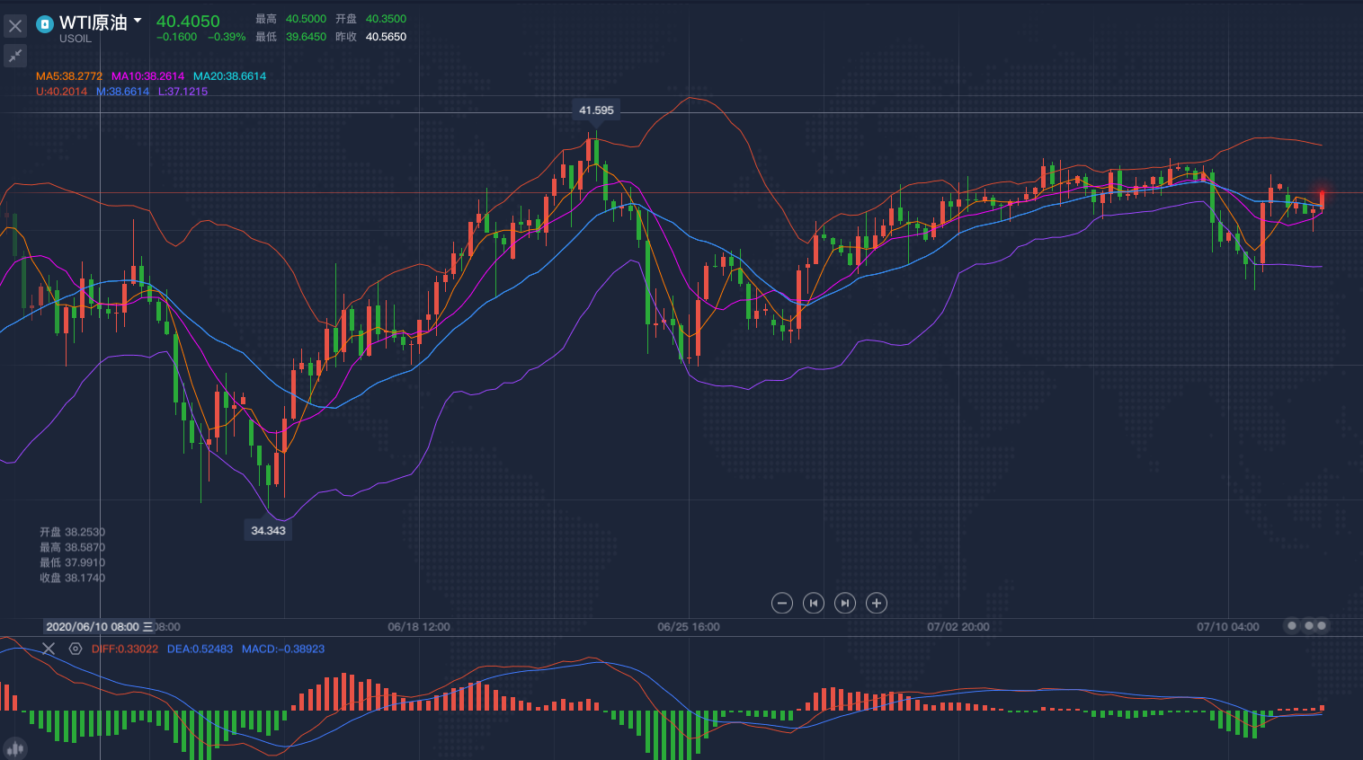 1、建议原油现价40.40空单进场,止损41,目标看39.50-39.30一线!