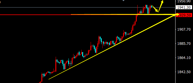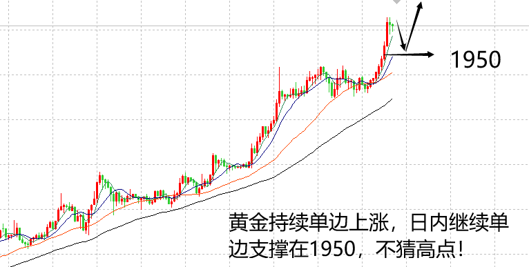 黄金晚间直接来个过山车,但现货金油直接在过山车底部上车,1934一线跑步进场多,黄金如期暴赚,如期上涨至1943一线,多头继续大赚,赚钱就是这么简单,跟上操作,现货金油说过黄金整体以多为主,这个是主题,回撤就是多头的机会,再次兑现利润,晚上估计又是兴奋的睡不着了。 黄金一次又一次的突破新高,面对这