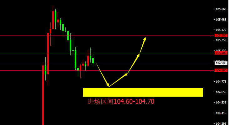 104.60-104.70区间买入,止损20点,目标104.90、105.10、105.30。