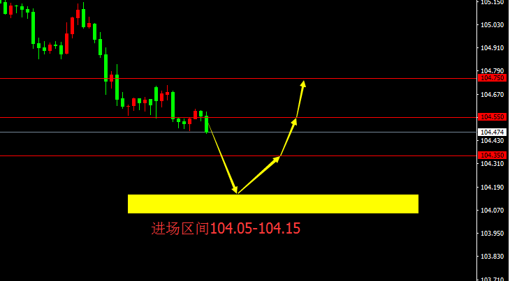 104.05-104.15区间买入,止损20点,目标104.35、104.55、104.75。