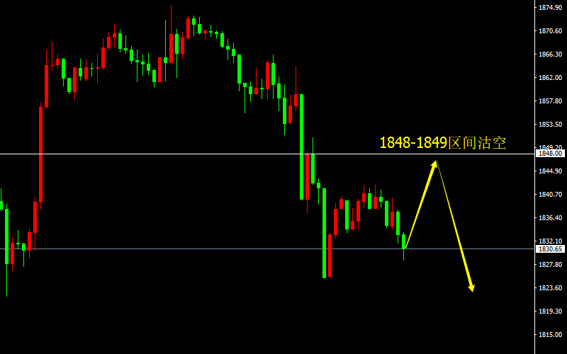 1848-1849区间沽空,止损3美元,目标1845、1841、1836。
