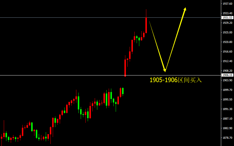 1905-1906区间买入,止损3美元,目标1909、1915、1920。