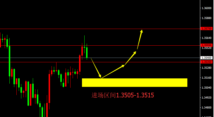 1.3505-1.3515区间买入,止损20点,目标1.3535、1.3555、1.3575。