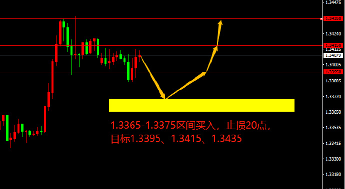 1.3365-1.3375区间买入,止损20点,目标1.3395、1.3415、1.3435